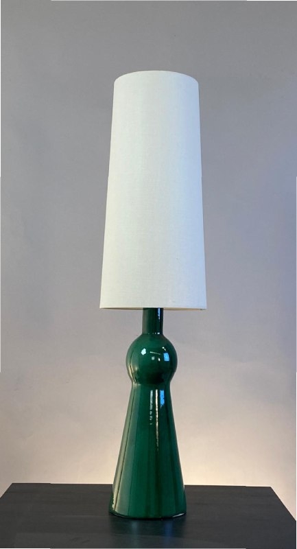 Lámpara de sobremesa fabricada a mano de forma artesanal en porcelana acabada en color verde brillo.